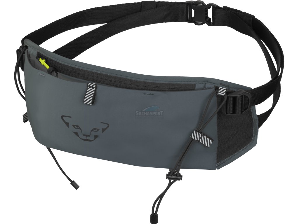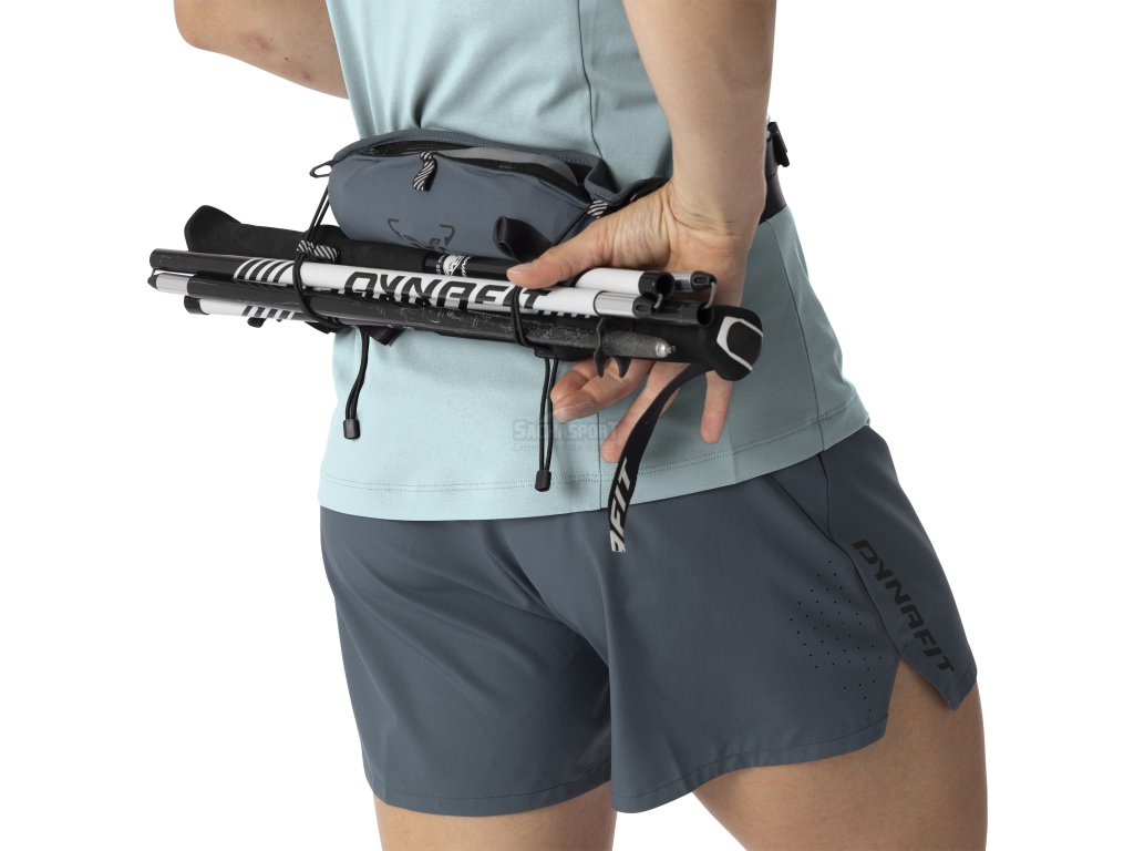 Praktický běžecký pás je rozdělen do dvou přihrádek a má dva popruhy na upevnění holí nebo oblečení. Polstrování ze vzdušné pěny na zadní straně zajišťuje extra pohodlí. Přizpůsobení velikosti je plynulé a přesné. Běžecký pás na trail je skvělou volbou pro rychlý běh, zejména v horkých dnech.